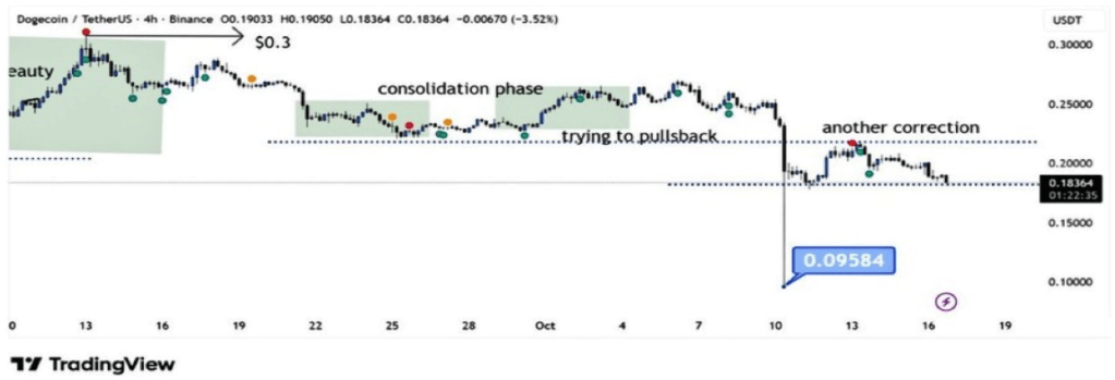 Market expert Bitguru adds a note of caution, observing that the $0.18 – $0.19 region is acting as a make-or-break level for bulls . A decisive drop below it could expose Dogecoin’s price to a deeper retracement toward $0.095. The analyst advises traders to remain vigilant, noting that DOGE still appears to be in a corrective phase .
