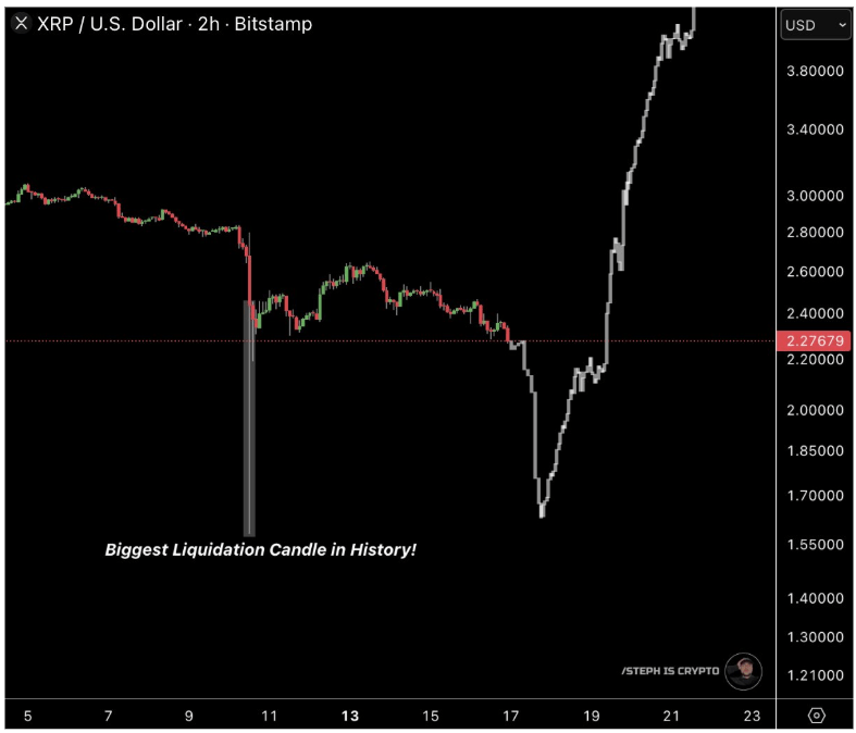 XRP has found itself back under the microscope as bullish momentum is yet to return with full force. Another weekend is here, and XRP’s price action is still perambulating around last weekend’s flash crash, which saw the cryptocurrency register its biggest liquidation candlestick in history.