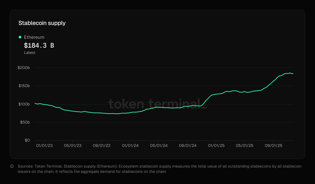 ethereum has unprecedented stablecoin liquidity. $184 BILLION in stablecoin supply. $965 MILLION in stablecoin inflow in the last 24 hours. that's why it's really difficult to see a newcomer challenge ethereum in the stablecoin sector. (also one of my biggest thesis on ETH.) https://t.co/nM5srdAEXS