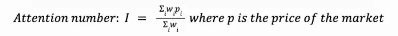 簡而言之,注意力預言機通過圍繞某一話題的二元預測市場,利用其價格、流動性預測時間和重要性等維度,構建一個加權聚合指數,旨在捕捉注意力的變化。為了確保其有效運行,底層市場必須經過精心挑選,以代表現實世界中相關的注意力輸入。使用預測市場作為注意力預言機的輸入還引入了「嵌入式操縱成本」,理論上可以減少惡意操控,因為對抗性交易者必須承擔資本風險才能影響指數。