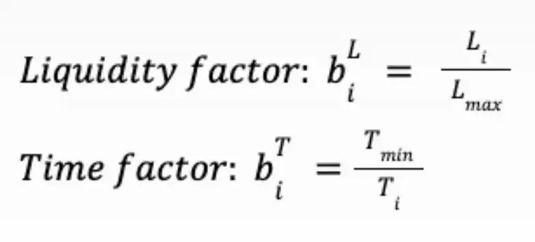 對於每個市場,我們擁有價格、流動性、解決時間以及一個重要性評分。為了便於說明,我們使用一個非常簡單的權重計算公式。每個市場的評分範圍為 1 到 10,並結合流動性和時間因素: