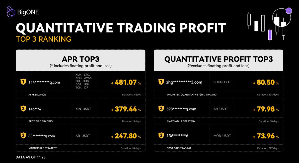 🏆 Check out today's #BigONE's Quantitative Trading Leaderboard! 🚀 Learn from the best, refine your strategy, and unlock your trading potential. 📈 👉 Start trading today: https://t.co/KIjhrgmLgT 📲 Get the BigONE app: https://t.co/O7BqrhtczT #CryptoTrading #ETH #BTC #InvestSmart