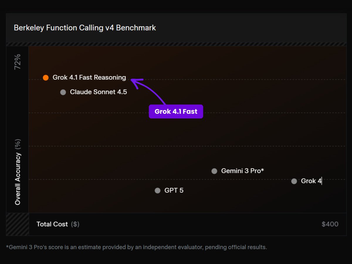 Grok 4.1 Fast is the new frontier in state-of-the-art tool calling - achieves highest accuracy It combines the frontier tool calling performance with blazing-fast inference and cost effectiveness while maintaining 3x lower hallucinations than the previous model https://t.co/G52q2a1G6b