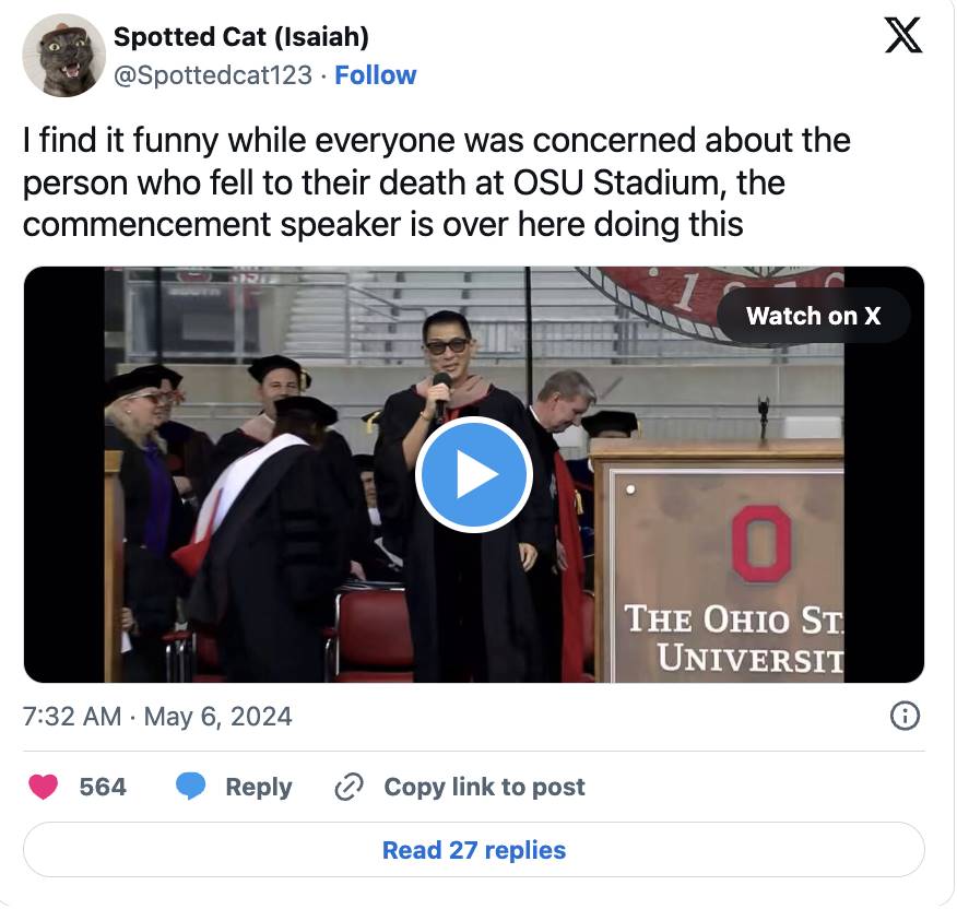 在俄亥俄州立大学(OSU)的毕业典礼上,提到比特币的演讲引发了观众的嘘声。这表明比特币虽然已经成为一个品牌,但对这群听众来说,它是一个令人厌烦甚至可能带有欺诈性质的品牌。—— Andrew M. Bailey (@resistancemoney), 2024 年 5 月 6 日。