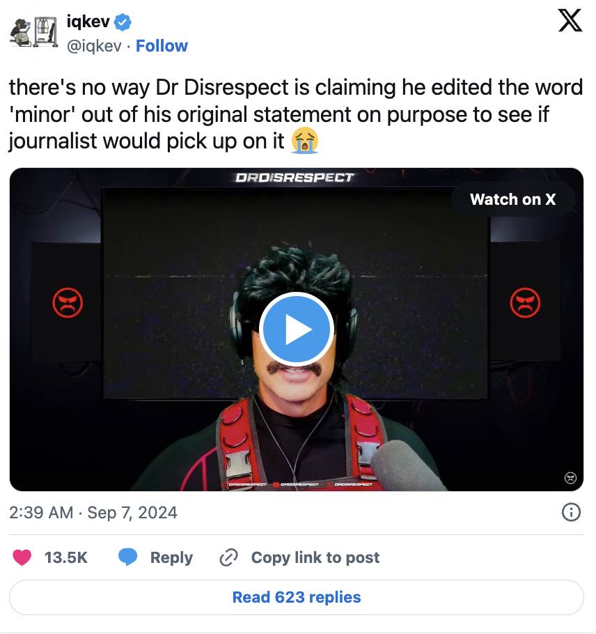 知名主播 Dr. Disrespect,同时也是加密射击游戏 Deadrop 开发团队的联合创始人,曾在 Twitter 上承认与未成年人进行不适当的聊天,但随后又声称这一切都是假的。