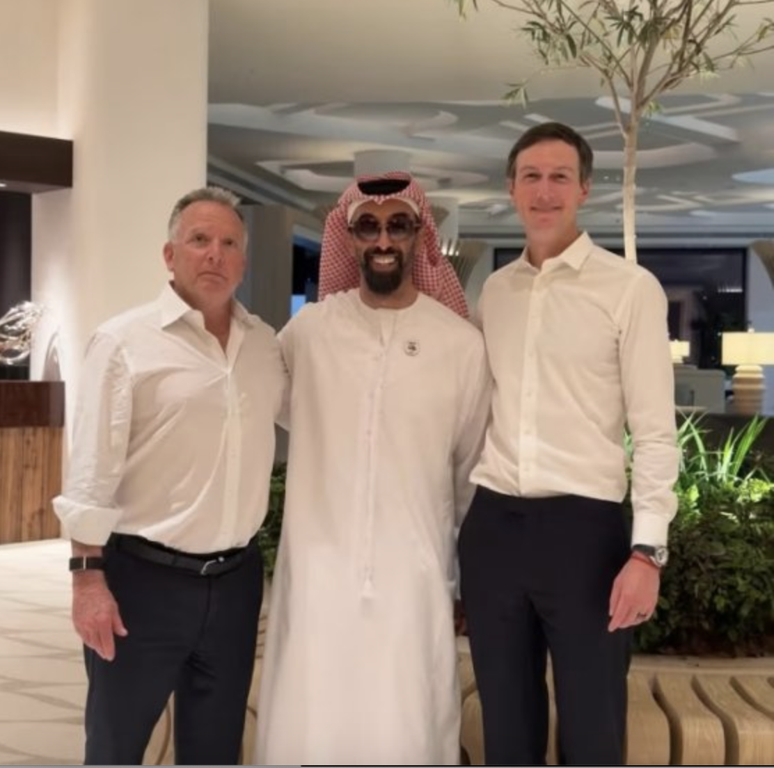 去年 10 月 22 日,Steve Witkoff、Jared Kushner 与 Tahnoon 在社交媒体上发布了一张照片