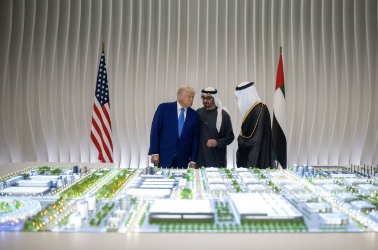 特朗普和穆罕默德在去年五月份的访问中参观了一个人工智能数据中心项目的模型