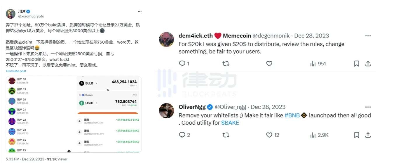 而在 BakerySwap 已经吸引了足够的关注后,社区就更关注 Launchpad 的参与体验了。12 月 28 日,BakerySwap 宣布第二个 Launchpad 项目 BitLand IDO 成功,收到了 1.16 亿枚$BAKE(价值约 8050 万美元)和 19 亿枚 1 Cat(价值约 2300 万美元),USDT 总额达到 1.035 亿美元。而高达 360 倍的超额认购数字意味着参与者所获得的份额可能会很小,果然,许多参与 BitLand IDO 的人表示成果甚微。