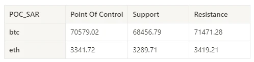 表格显示 BTC 与 ETH 过去一周中每周的密集成交区间