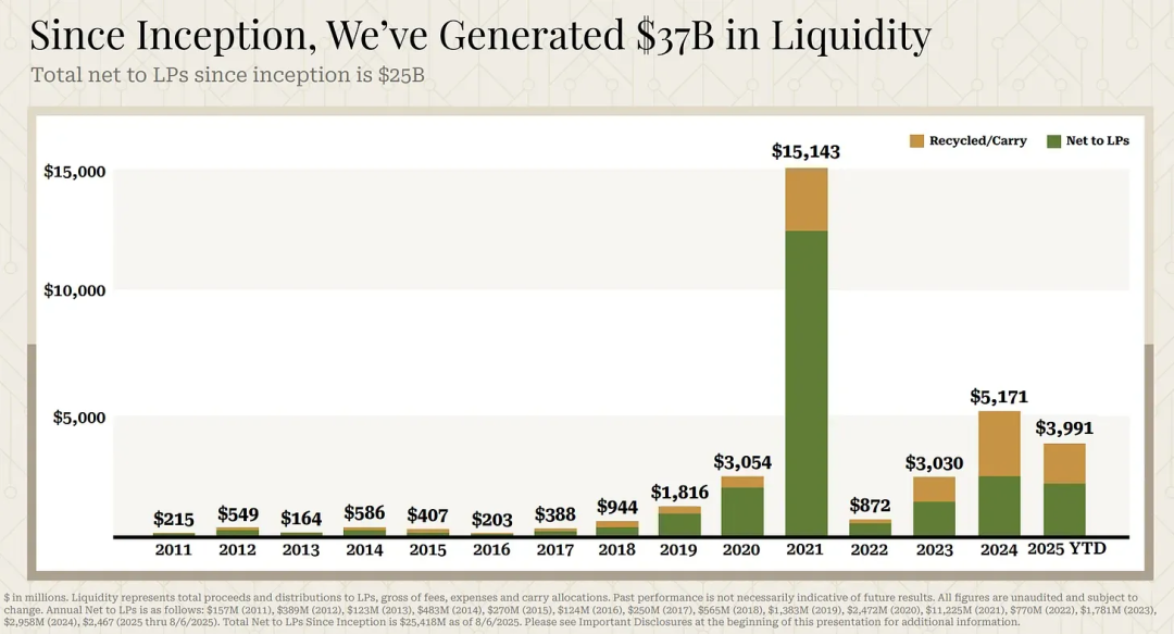 a16z 给 LP 累计产生了 250 亿美元净回报