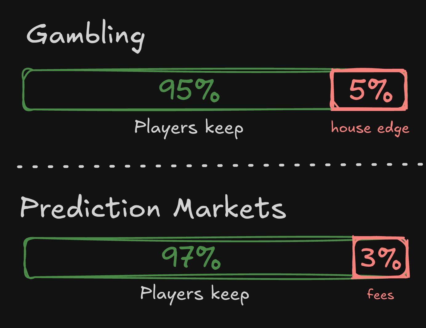 预测市场收取费用的结果是,它们重新引入了赌博中的负和博弈,这意味着玩家会随着时间的推移向赌场/平台流失资金。