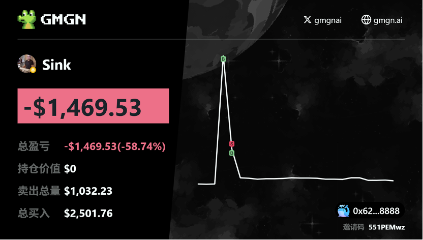 接下来的日子里,Jerry完全沉浸在了BSC meme的疯狂世界中。他继续pvp, 主要吃到了ROSE、cster,wrinkles等,资金稳步增长到600U。 但meme的世界永远充满惊喜, 9月25日一个名叫Sink的项目让他出现了单日最大亏损,单日亏损1000U。