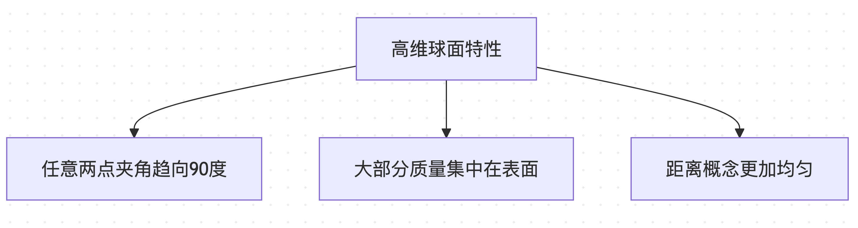 在高维空间(如4096维的词汇表空间)中,球面分布具有反直觉的特性: