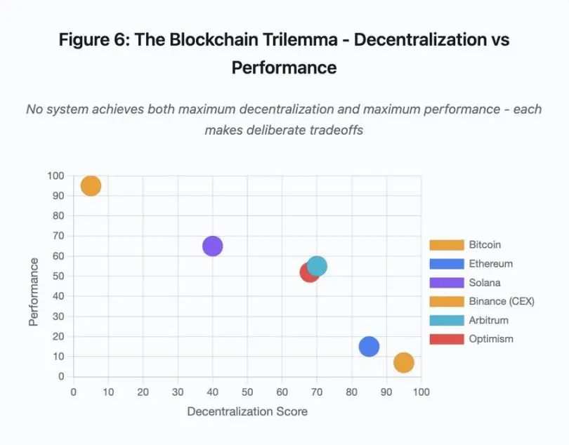 关键洞察:没有系统能同时实现最大去中心化和最大性能,每种设计都为不同的用例做出了深思熟虑的权衡。