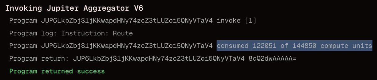Jupiter Swap :通过 Jupiter 路由的 swap 可达 ~100,000 CU,总费用 0.000005 SOL