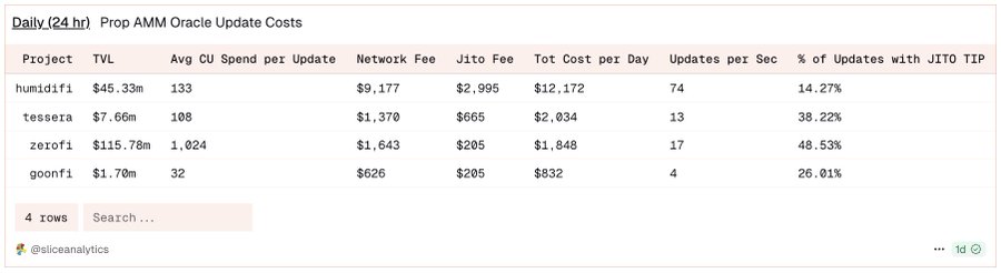 Prop AMM 更新 :简单曲线更新极便宜。Wintermute 的更新低至 109 CU,总费用仅 0.000007506 SOL