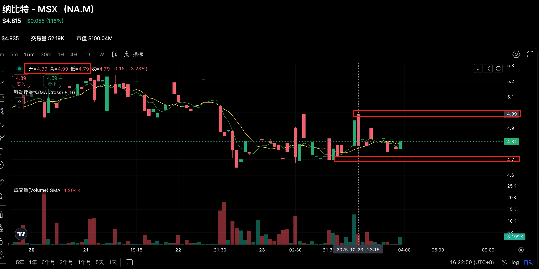 此外,BNB 财库上市公司 Nano Labs(NA)股价 也迎来了一小波上涨,从 4.7 美元涨至 4.99 美元,目前回落至 4.8 美元,24 小时涨幅约为 1.16%。