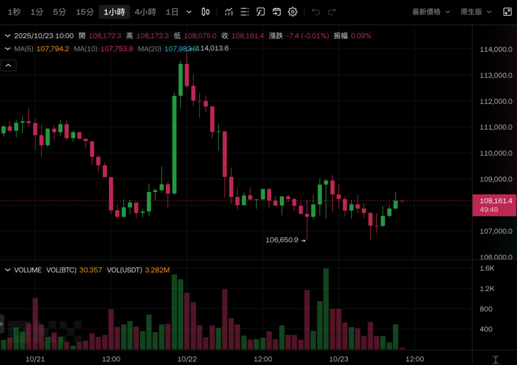 兩隻近期勝率無敵的巨鯨把空單平倉,是否代表比特幣價格即將反轉還需要時間觀察。目前比特幣價格在今晨短暫跌破 10.7 萬美元後又快速拉回,截稿前現報 108,161 美元,似乎有築底的跡象。