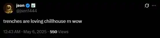 Chillhouse 的开局完全可以称得上顺利。代币诞生后的不到一周,就曾经突破 1000 万美元市值。现在已经作为 pump.fun 首席内容官的 @json1444,在 Chillhouse 诞生的首周就提到了 Chillhouse。