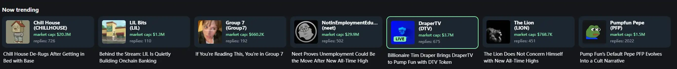 尽管 Solana 上的优秀 meme 币们目前在市值上仍远远没能和 ETH 上的明星 meme 币们相媲美,也没能和 Solana 上的老牌 meme 币们看齐,甚至没能触及去年一个又一个热点盘的高度,但我从没有替这些新币们感到「生不逢时」的念头。