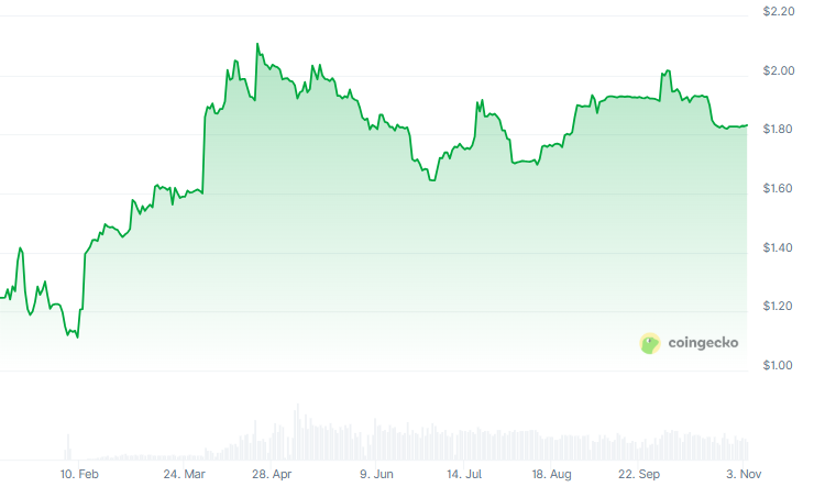 行情数据显示,Legacy Network 为今年初进行 TGE 的项目,其代币 LGCT 价格曾在今年 2 月 9 日触及历史低点 1.07 美元,并于 4 月创下历史高点 2.2 美元。目前报价 1.83 美元,流通市值约为 1.95 亿美元。