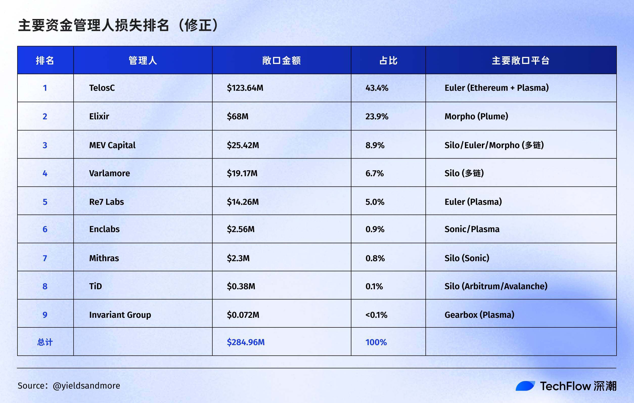 根据YAM的分析,2.85亿美元的债务分布在多个平台,由不同的"Curator"(资金管理人)负责。让我们看看具体哪些平台正坐在这个火药桶上: