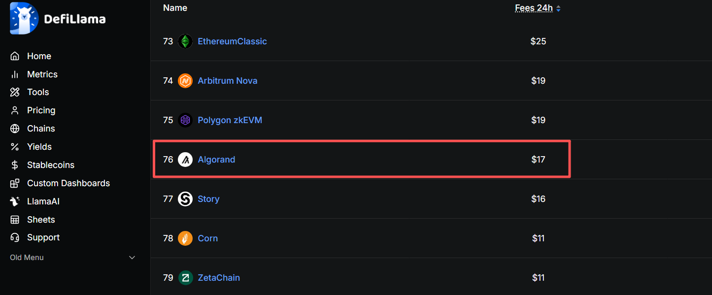 这是 Algorand ——这条曾经头顶“区块链不可能三角解决者”、由图灵奖得主 Silvio Micali 创立、拥有顶级技术背书的公链,某一天的全网协议收入。
