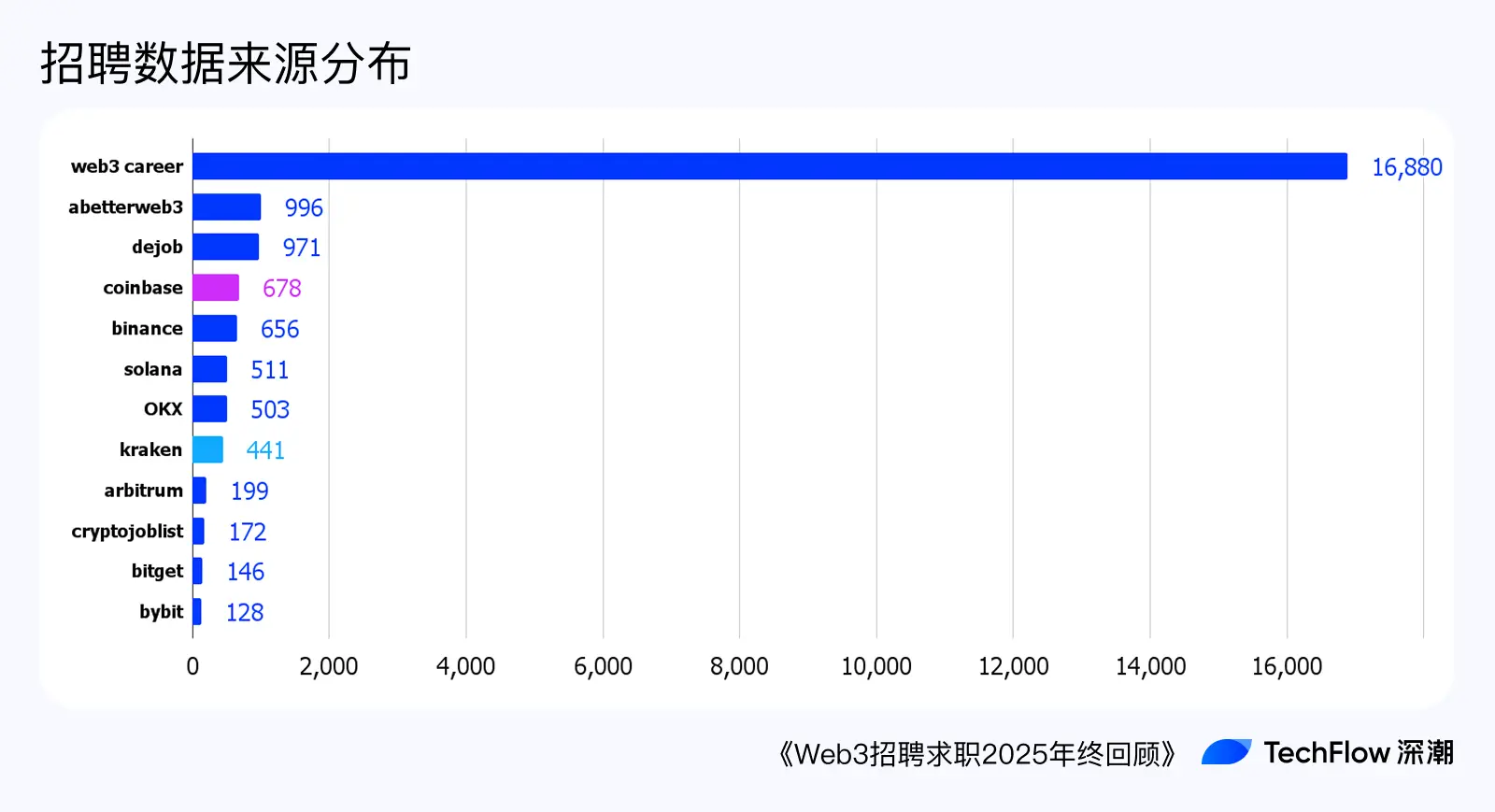 各招聘渠道中, web3.career 因其能快捷筛选远程岗位、岗位多公司多,成为许多招聘方和求职者的首选,发布量断崖式领先。