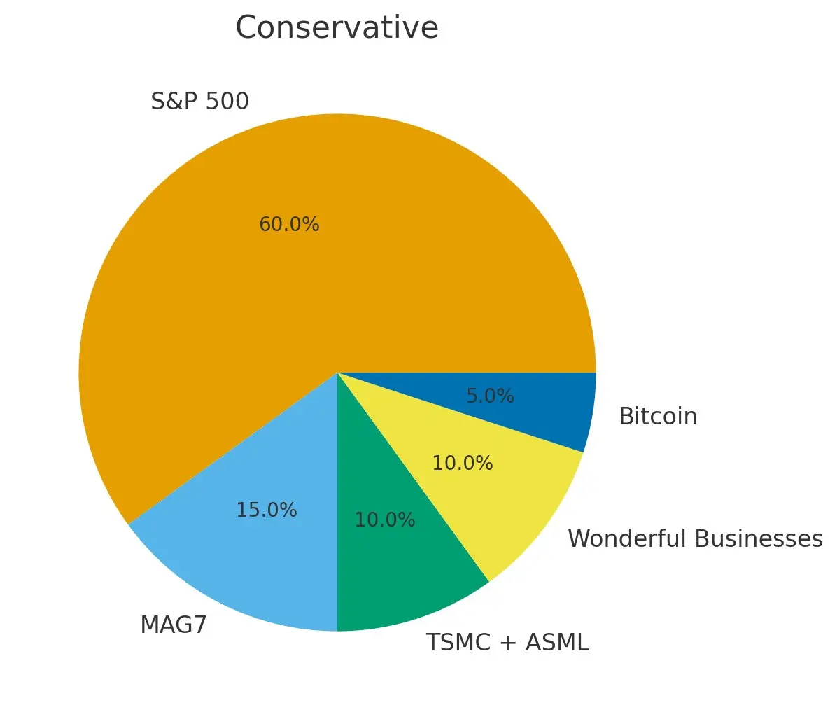 • 5% 比特币:小仓位配置,以获取不对称的上涨潜力,同时不扭曲整体波动性。