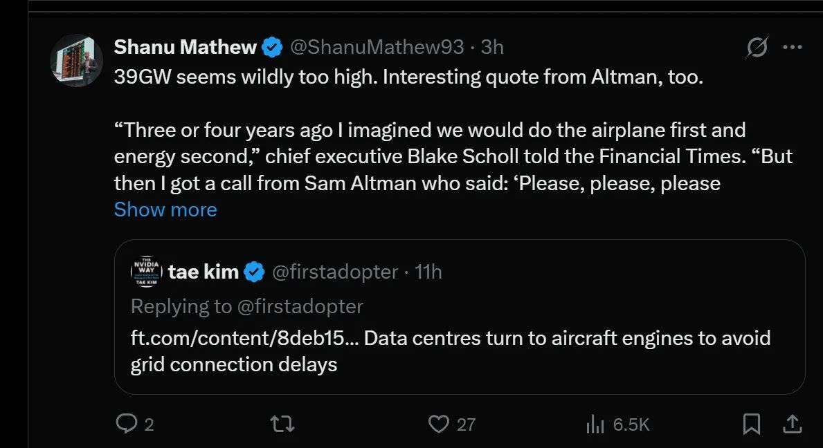 • Sam Altman (OpenAI CEO)正在四处联系企业,急切地寻求电力供应;