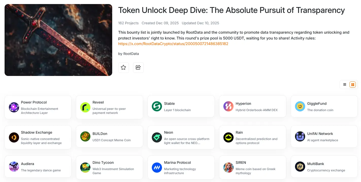 RootData 发布代币解锁赏金复盘:攻坚透明度基建“最难啃的骨头”