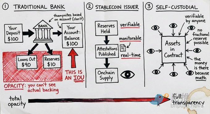 這並不意味著自我託管適合所有人。大型機構可能仍需要監管框架和保險產品。但對於許多使用場景而言,具有可監測發行方風險的自我託管模式,優於需要保險兜底的不透明機構信任模式。