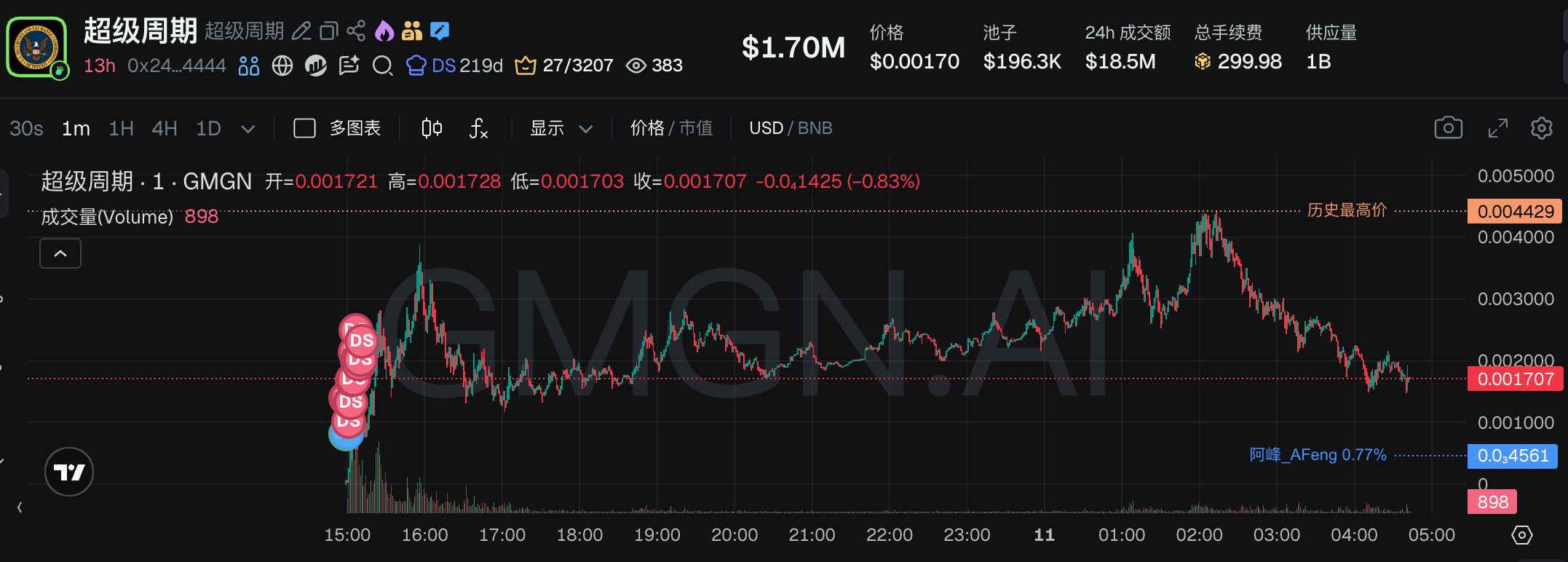 GMGN 链接:https://gmgn.ai/bsc/token/0x1a1e69f1e6182e2f8b9e8987e83c016ac9444444