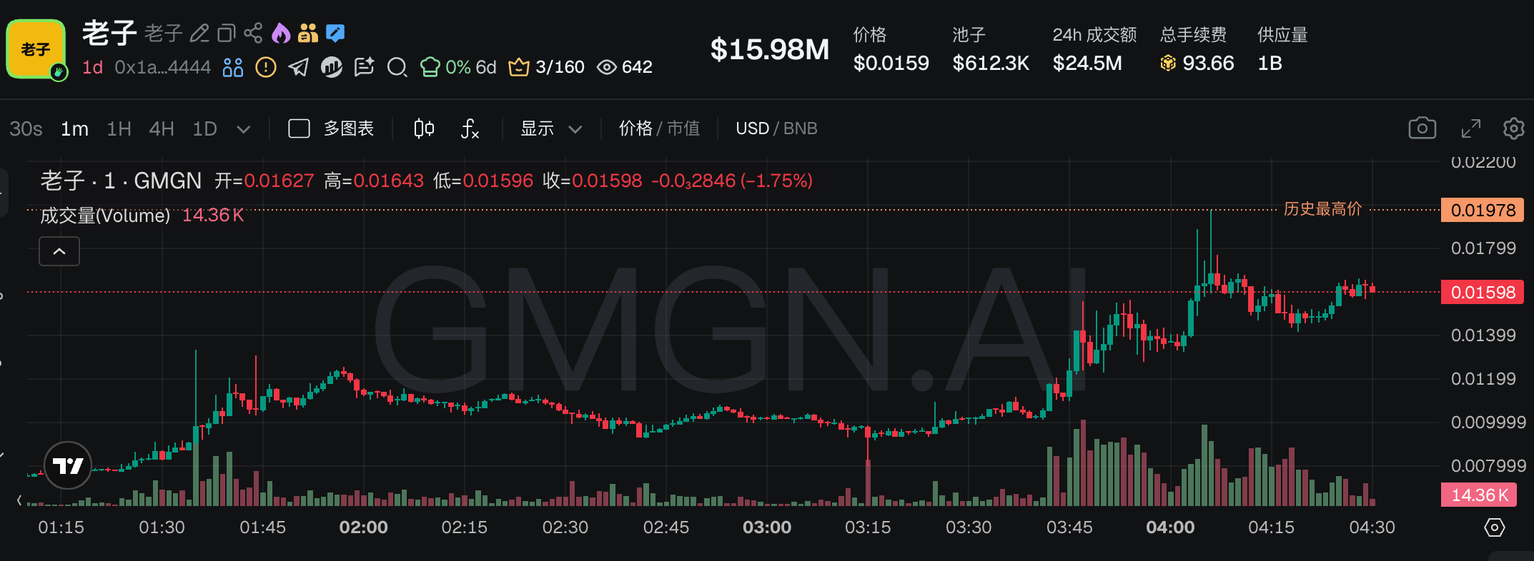 最新消息显示, BSC 基金会花费 5 万美元购入中文 Meme 币哈基米及老子 ,也为该 Meme 币的上涨带来了消息面上的支撑。