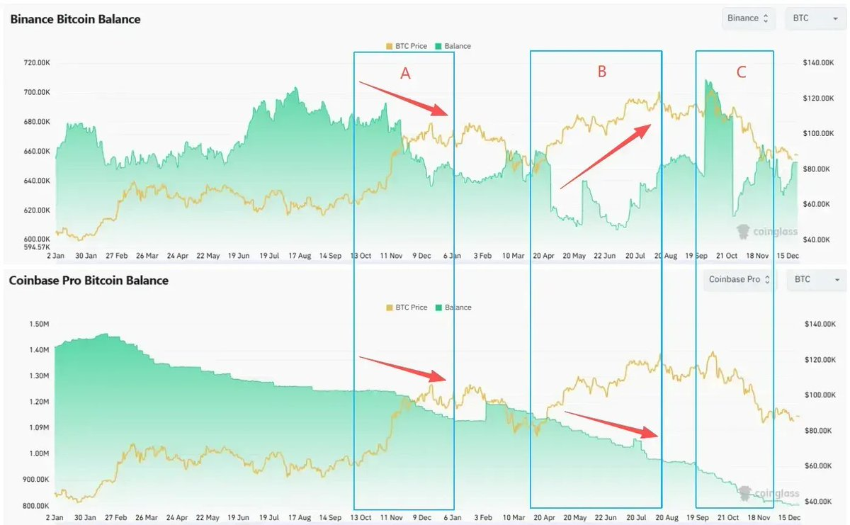 随着B阶段和C阶段价格反弹,币安余额显著增加。离岸现货持有者补充库存,潜在的卖压也随之增加。