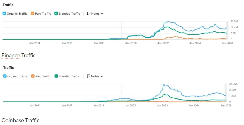 自2025年初以来,币安、Coinbase和其他顶级交易所的流量数据清晰地表明,在特朗普抛售其“梗币”之后,散户投资者的疲软情绪持续存在。