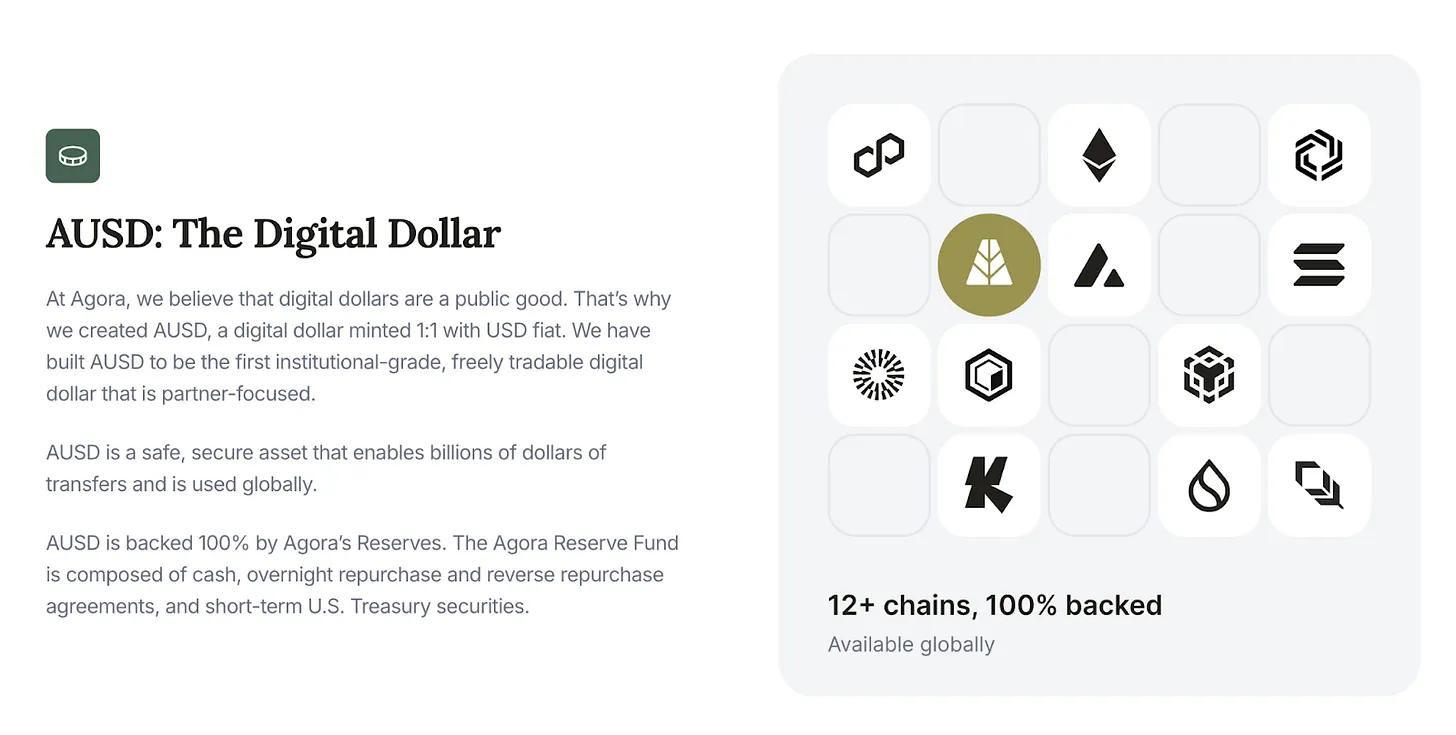 AUSD由Agora发行。支撑AUSD的抵押品投资于实物美国国债。从这些国债中获得的利息在链下累积,然后定期输送到Katana网络,用于强化以AUSD计价的资金池的激励机制。