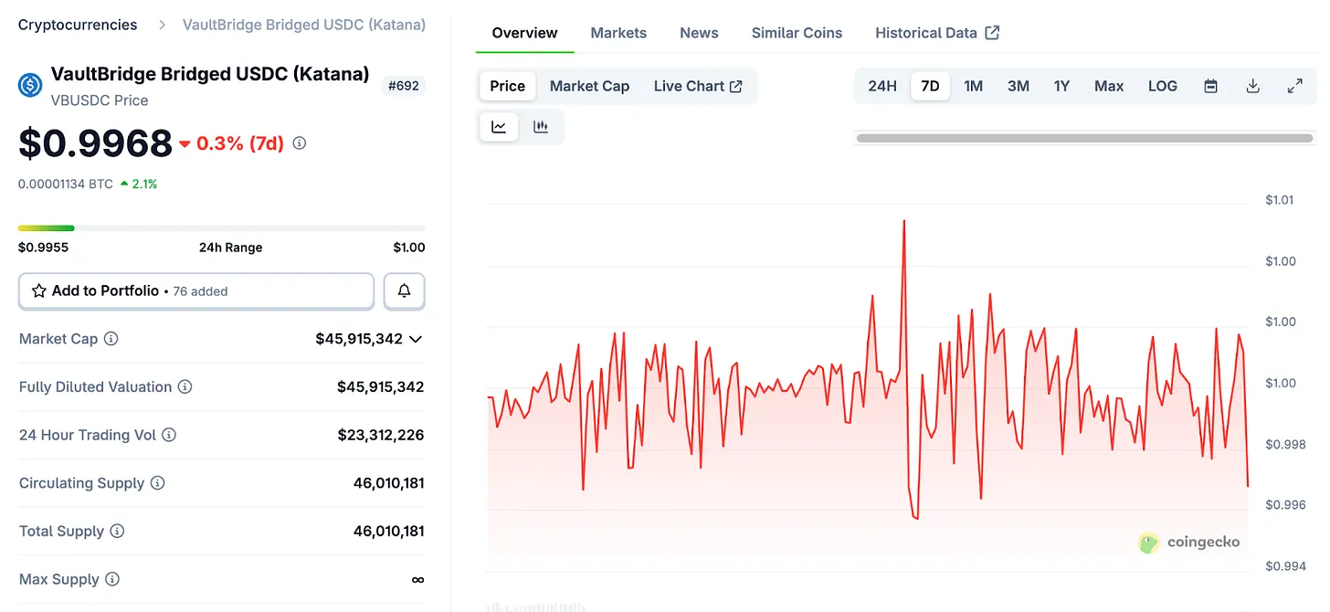 在Katana上,用户会收到对应的vbToken,比如vbUSDC。这个代币可以在Katana的DeFi生态中自由使用。