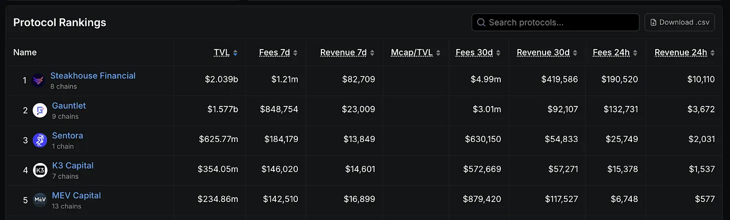 Gauntlet和Steakhouse Financial是DeFi领域资深的风险管理机构,在为主流借贷协议设置参数、为头部DeFi项目提供咨询方面经验丰富。它们的角色类似于传统金融中的专业资产管理公司,负责评估应将资本分配到哪些协议、确定合理的仓位规模、并持续监控风险敞口。