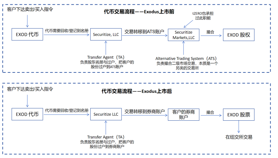 图9: Exodus 上市前后代币交易流程示意图