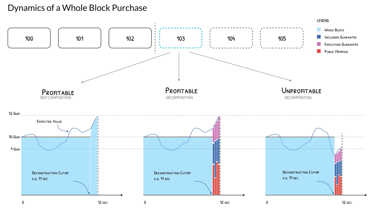 在“完美信息”假设下,整块区块包含的信息量最大,也赋予买方最高的自由度,使其可以在区块中 自由排序并插入任意组合的交易 (包括私有订单与公共 mempool 交易)。