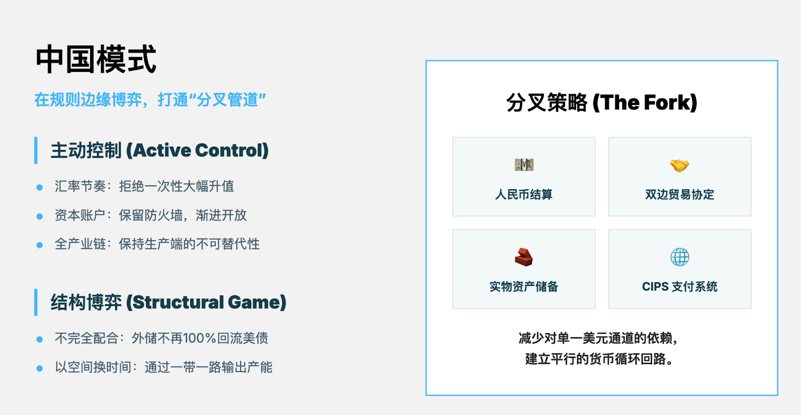 更重要的是,这一路径并未止步于「维持顺差」,而是在悄然改变人民币需求的结构。随着中国在全球贸易、制造业和关键供应链中的地位上升,人民币不再只是一个结算工具,而开始被更多经济体视为降低外部依赖、分散货币风险的现实选项。在地缘政治与金融制裁工具化加剧的背景下,对美元体系的单一依赖本身开始被视为风险敞口,这使得对人民币结算、人民币融资以及人民币资产配置的需求具备了明确的战略动机。