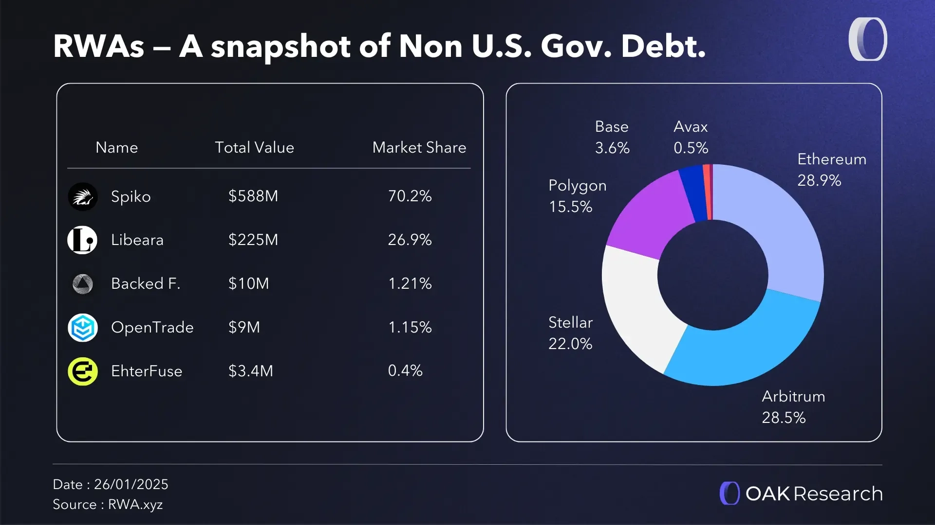 尽管该细分市场规模尚小,但它清晰反映出 RWA 向地理多元化发展的趋势。在这一领域, 价值捕获高度依赖发行人是否具备处理本地监管框架的能力,以及是否能够向全球投资者提供易理解、可使用的产品。