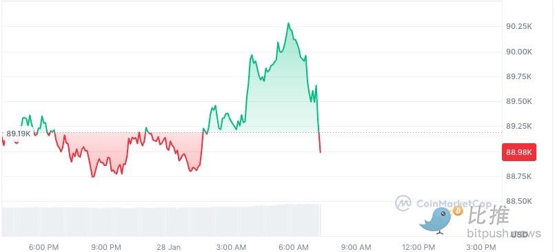 加密资产同样如此。比特币价格在消息公布后,先是从 $89,600 短暂下探至 $89,000 关口,随后迅速拉回至 $89,300 附近。波动幅度不足 1%,以太坊(ETH)徘徊在 $3,000 大关,Solana 和 XRP 等主流山寨币也维持在前期震荡区间。