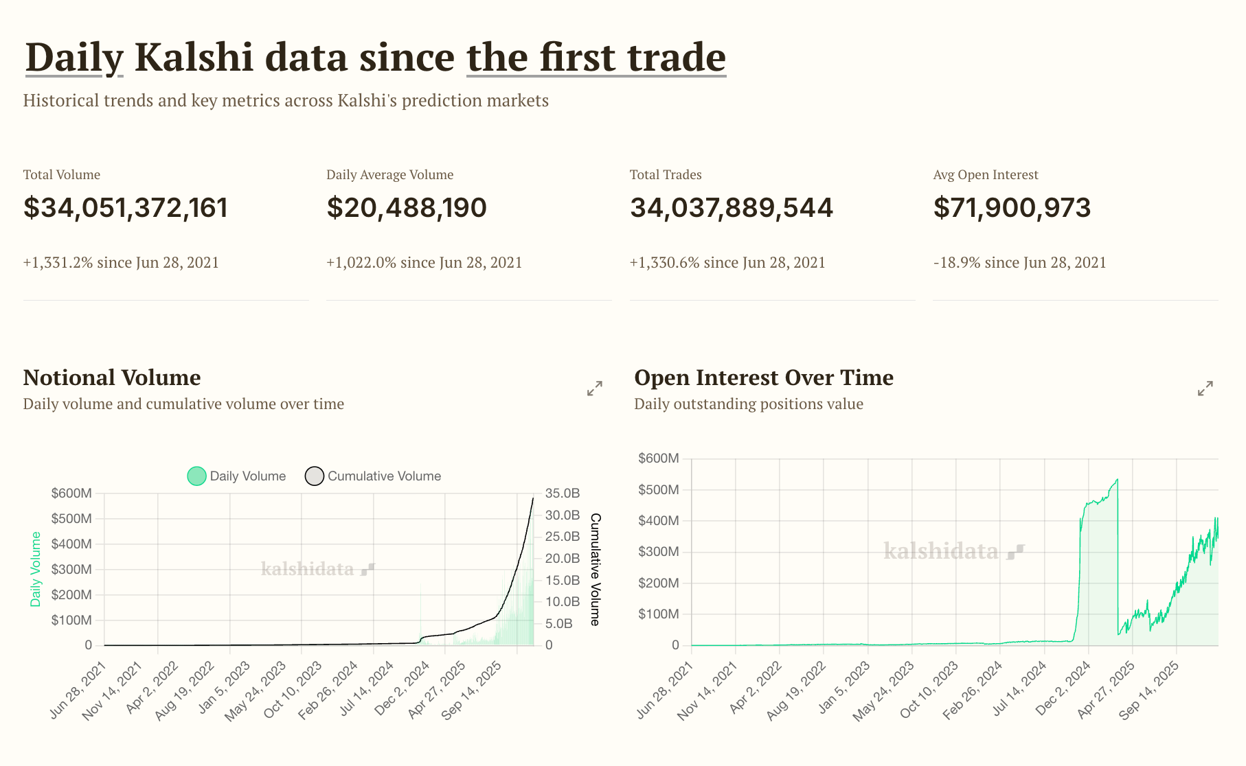 KalshiData 此前 发文表示 ,2025 年 Kalshi 各项指标均实现创纪录增长。