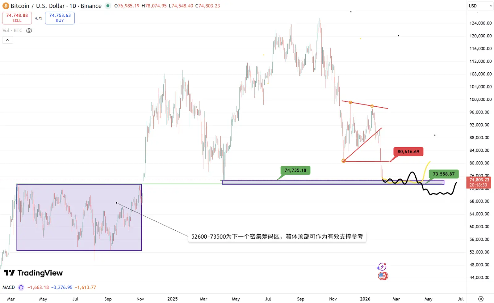 预警方面,本轮暴跌标志着市场已从“压力位下方整理”演变为情绪驱动的下行阶段。短期内,若比特币无法快速收复关键失地并企稳,恐慌情绪仍可能延续,波动率维持高位。叠加宏观层面流动性预期仍偏谨慎,一旦风险资产整体承压,加密市场可能继续放大跌幅。整体来看,当前阶段不宜低估下行惯性,在去杠杆尚未充分完成前,需警惕二次急跌或长时间低位消耗的风险。