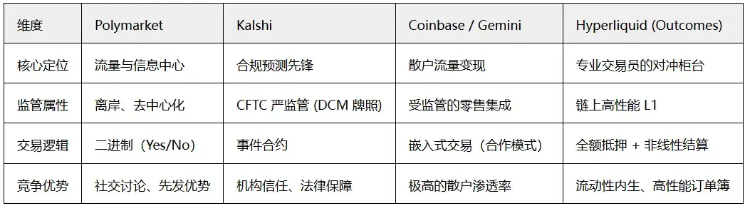 目前的预测市场正处于「1995 年浏览器大战」时刻,形成了四种截然不同的商业路径:
