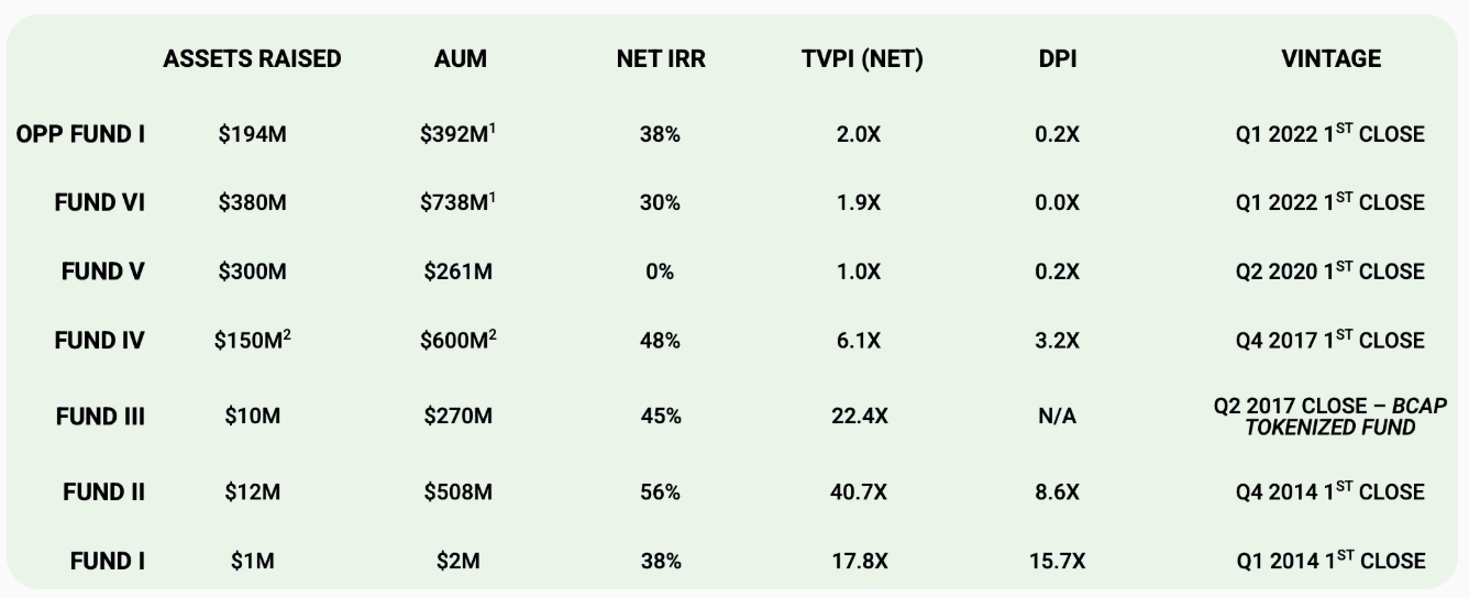 从不同年份(vintage)来看,这组基金回报呈现出非常清晰的“周期断层”:2014–2017 年成立的基金(Fund I、Fund II、Fund III、Fund IV)整体回报显著领先,TVPI 普遍在 6x–40x 区间,Net IRR 维持在 38%–56%,同时也已经具备较高的 DPI,说明这些基金不仅账面收益高,且已经完成了大规模兑现,吃到了早期加密基础设施和头部协议从 0 到 1 的时代红利。