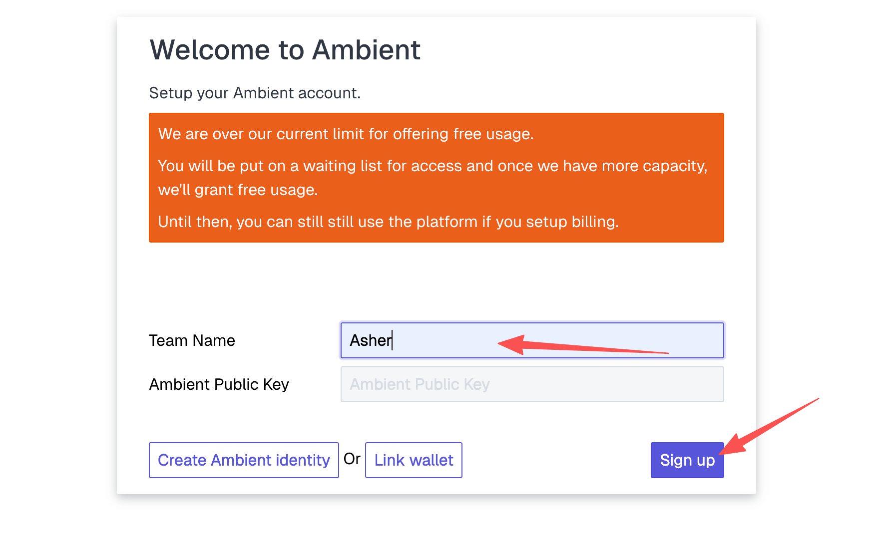 STEP 2. 输入个人昵称后点击“Sign up”完成登录。