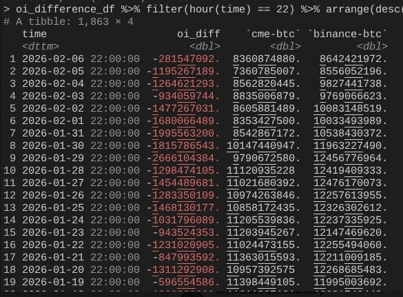 这便将我们带回到 2 月 6 日,当天比特币完成了一次超过 10% 的强势反弹。此时,一个值得注意的现象是,CME 的未平仓合约(OI)扩张速度明显快于币安 (同样感谢 @dlawant 将小时级数据对齐至美东时间下午 4 点) 。从 2 月 4 日到 5 日,可以清楚看到 CME OI 的明显坍塌,这再次印证了基差交易在 2 月 5 日被大规模平仓的判断;而在 2 月 6 日,这部分头寸可能重新建立,以利用更高的基差水平,从而抵消了资金流出的影响。
